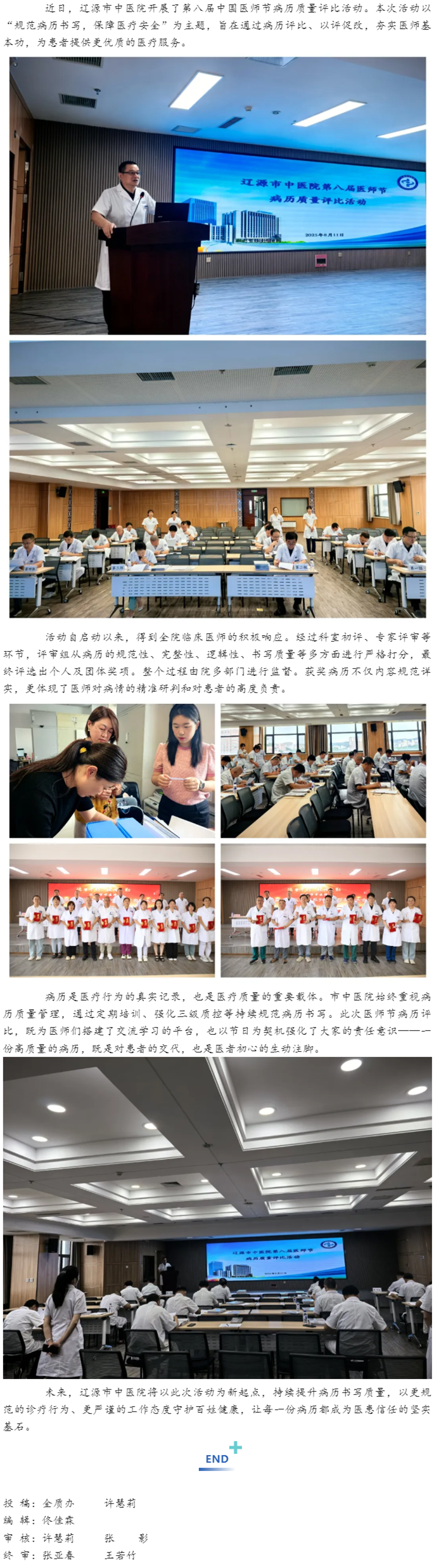 以赛促优强本领!辽源市中医院医师节病历质量评比活动圆满结束