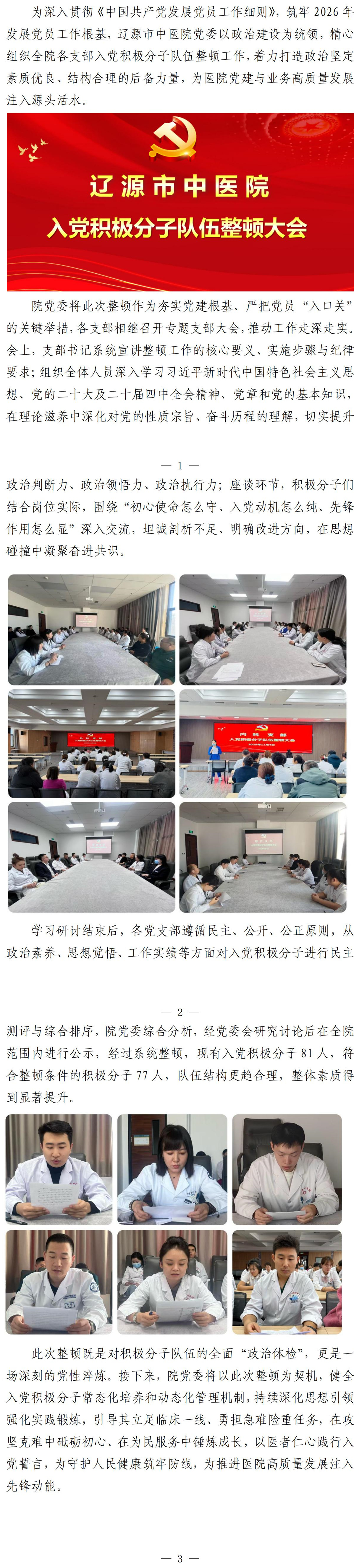 强基铸魂严整顿 淬炼党性育先锋 ——辽源市中医院开展入党积极分子队伍整顿工作