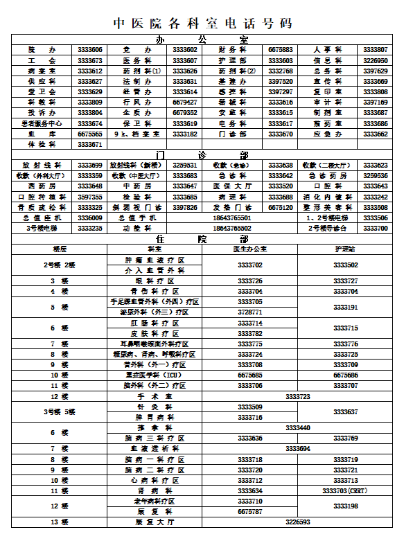 科室电话